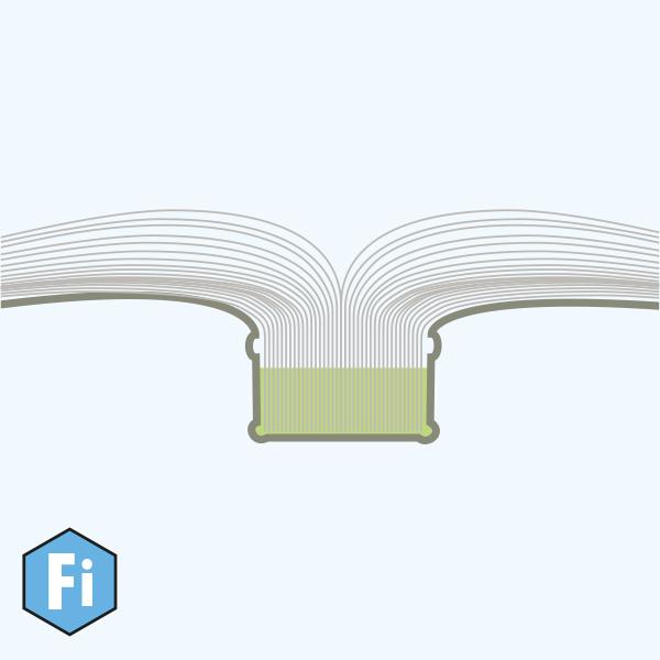 Für ein besonders gutes Aufschlagverhalten der Mappe sorgt unsere 4-fache Nutung. Diese erfolgt mit der Faserrichtung des Kartons, was uns absolut präzises Nuten ermöglicht und Faserbruch vermeidet. Das Resultat ist eine nahezu plan aufschlagbare Bindemappe. Unsere FlipIt-Nutung schont auch den Leim vor Ermüdungsbruch.